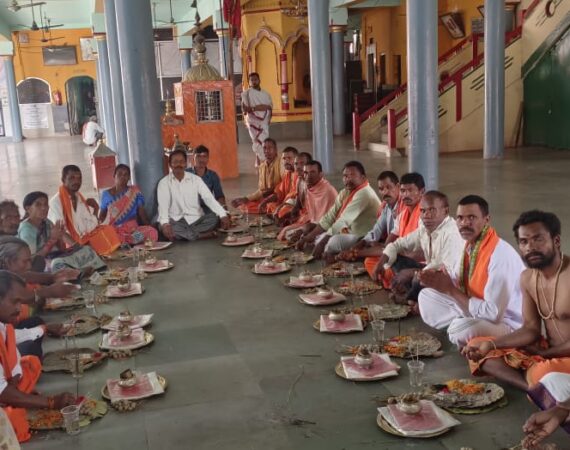 Community meals and prasad distribution organized with devotion, promoting equality, compassion, and the spirit of selfless service.